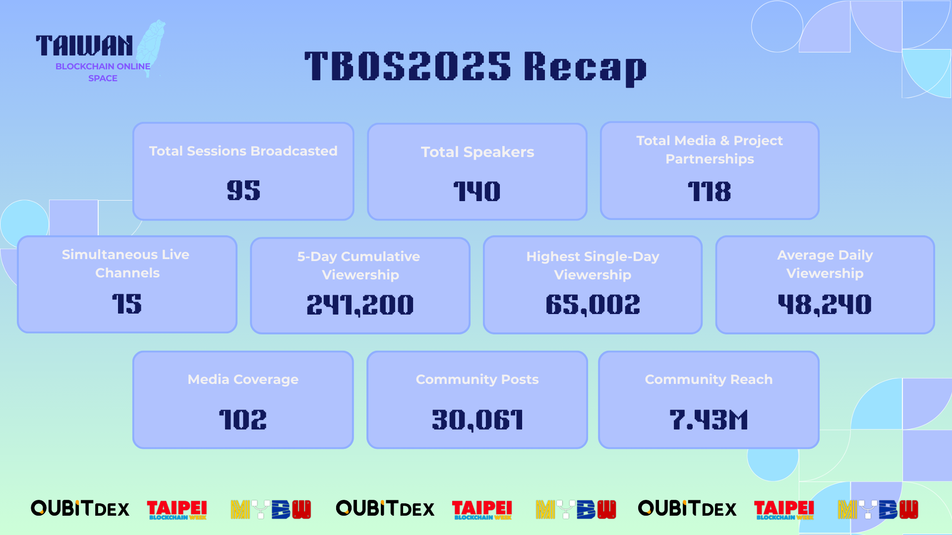TBOS 發起人老兔在會後表示:「首次舉辦線上峰會便能匯聚如此多的重量級嘉賓,並獲得全球社群的熱烈迴響,這讓我們備受鼓舞。超過 24 萬的觀看人次,不僅僅是一個數字,它代表了全球 Web3 從業者與愛好者對未來發展的堅定信心與共同期待。我們特別感謝 QuBitDEX 的支持。」