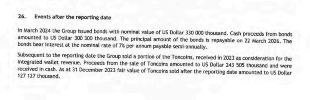 由於 Telegram 錢包交易或轉帳手續費是以 TON 進行支付,所以其數位資產有一大部分應是以 TON 形式保存,金融時報也提到 Telegram 確實在今年出售了一些 TON 獲得超過 2.43 億美元的現金收入。
