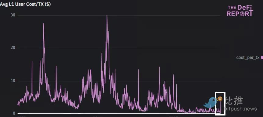隨著 DeFi 活動的興起,L1 上的平均交易費用自去年第四季度以來首次飆升。