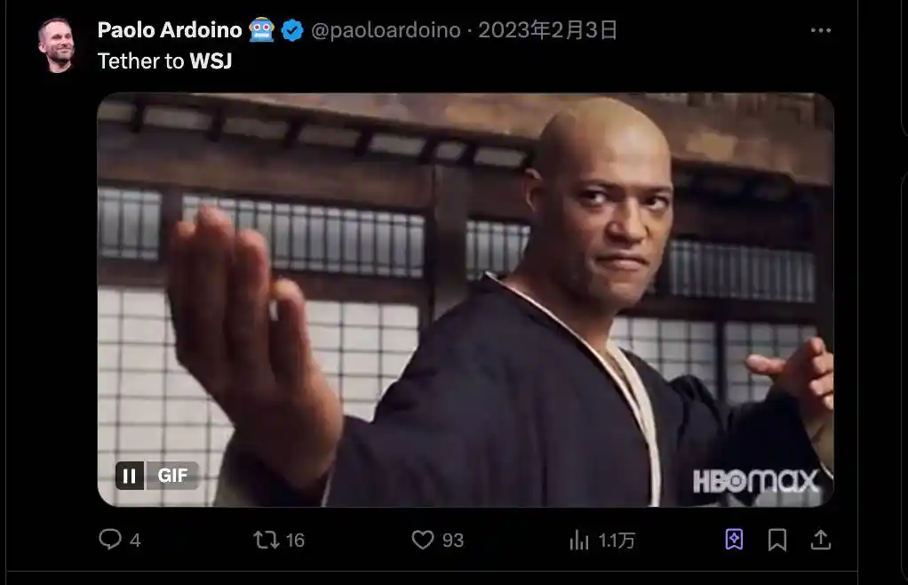 但即便當了執行長,他依然是那個工作到凌晨的人。他的 Twitter 帳號 @paoloardoino 經常深夜還在回覆技術問題。當媒體質疑 Tether 時,他會立即反駁,比如直接稱《華爾街日報》的批評文章為「小丑文章」。