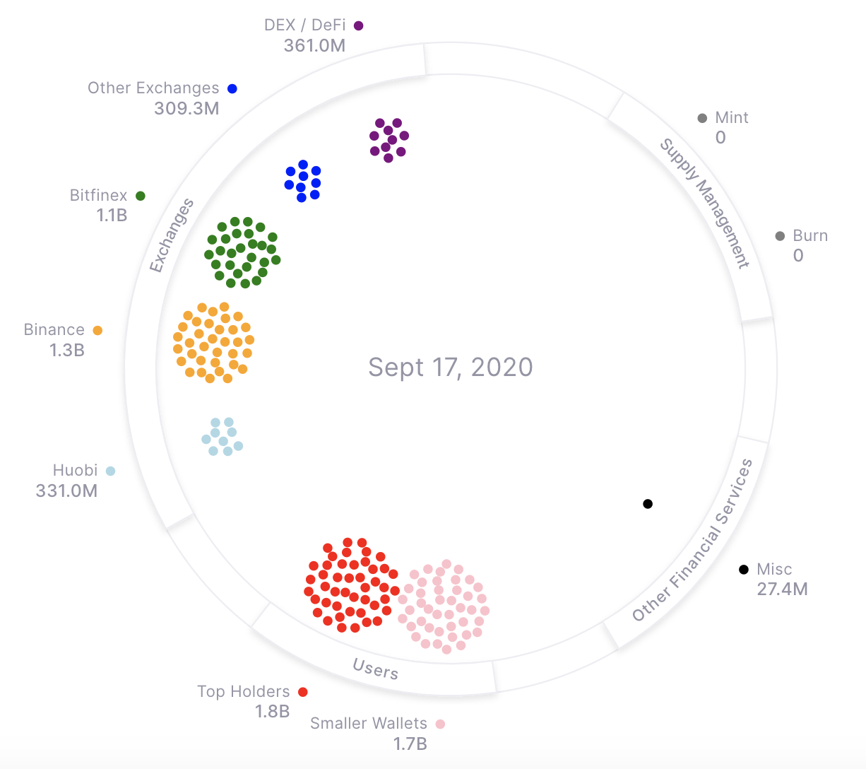 值得一提的是,根據 Flipsidecrypto 網站資料顯示,USDT 分佈仍集中在中心化的交易所,諸如幣安(Binance)、Bitfinex、火幣(Huobi)等。圖表指出,光是 Bitfinex 和幣安加總,就持有高達 24 億美元的 USDT,而去中心化交易所(DEX)和 DeFi 總和也才 3.61 億美元。