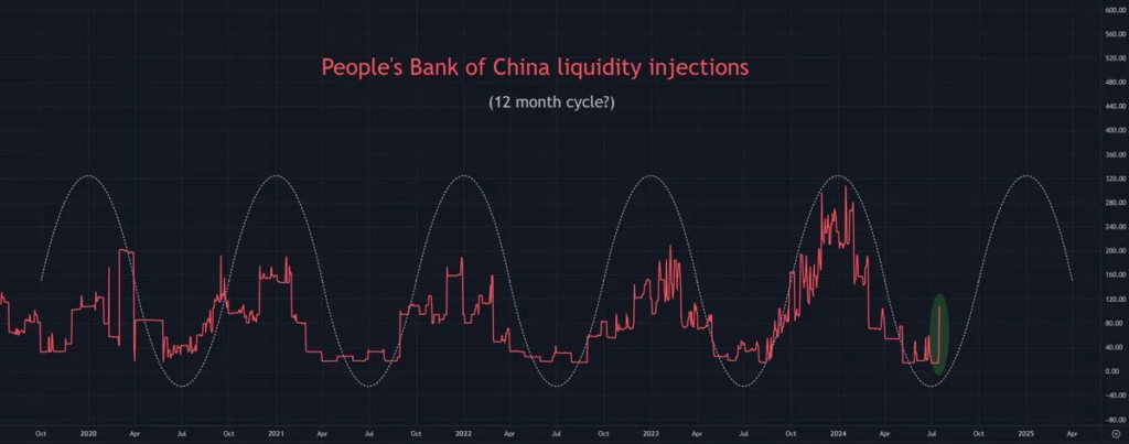 洞察:僅次於美國聯準會,中國人民銀行在全球流動性動態中扮演著重要角色。關注 PBoC 的流動性注入,這些注入開始顯現出動向。