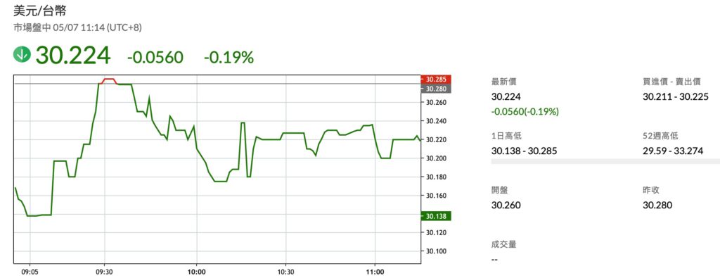 新台幣今日早盤走勢