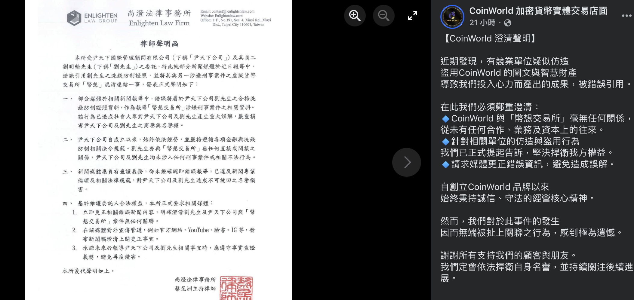 (前情提要:CoinWorld(尹天下)被金管會移出「合規交易所」名單!官方稱自請終止業務 )