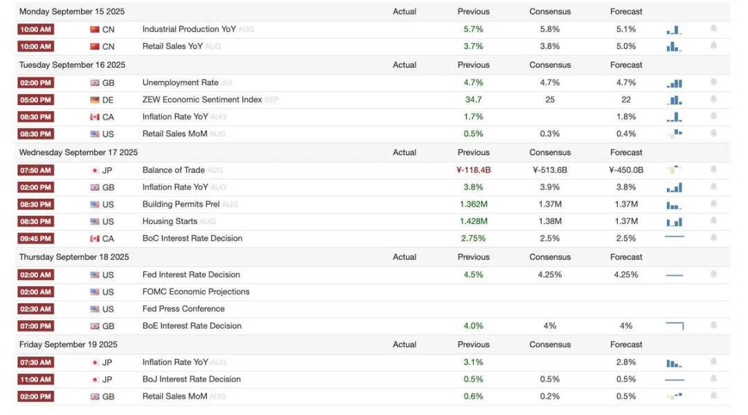 下面將從宏觀事件前瞻、比特幣熱度指標、市場全景回顧以及核心經濟資料解讀等角度展開具體分析,資料截止到 2025 年 9 月 14 日。