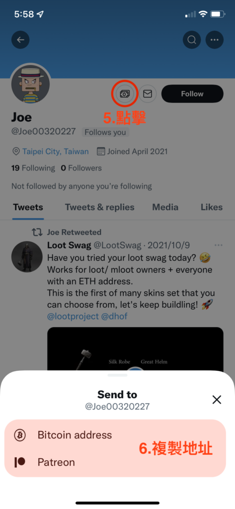 第五步:新增完成,接下來其他用戶只要點擊你個人頁面中,有個鈔票圖示的小按鈕,就可以自由複製你所提供的錢包地址了,是不是很簡單呢!