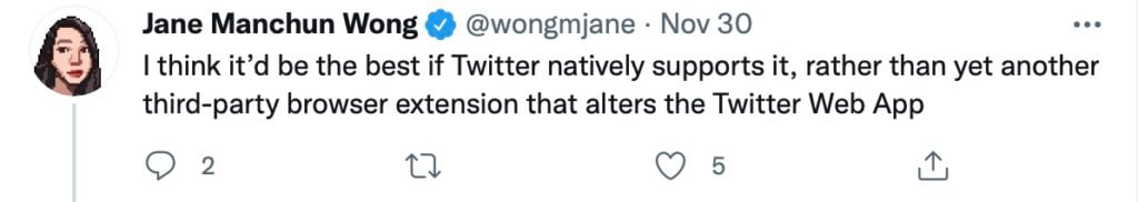 據動區先前報導, Jane 在 10 月底的時候,還提到推特在 NFT 的動向,並在推文上公布了最新功能快照。相信等該功能一推出,又將成為社群的討論熱潮。