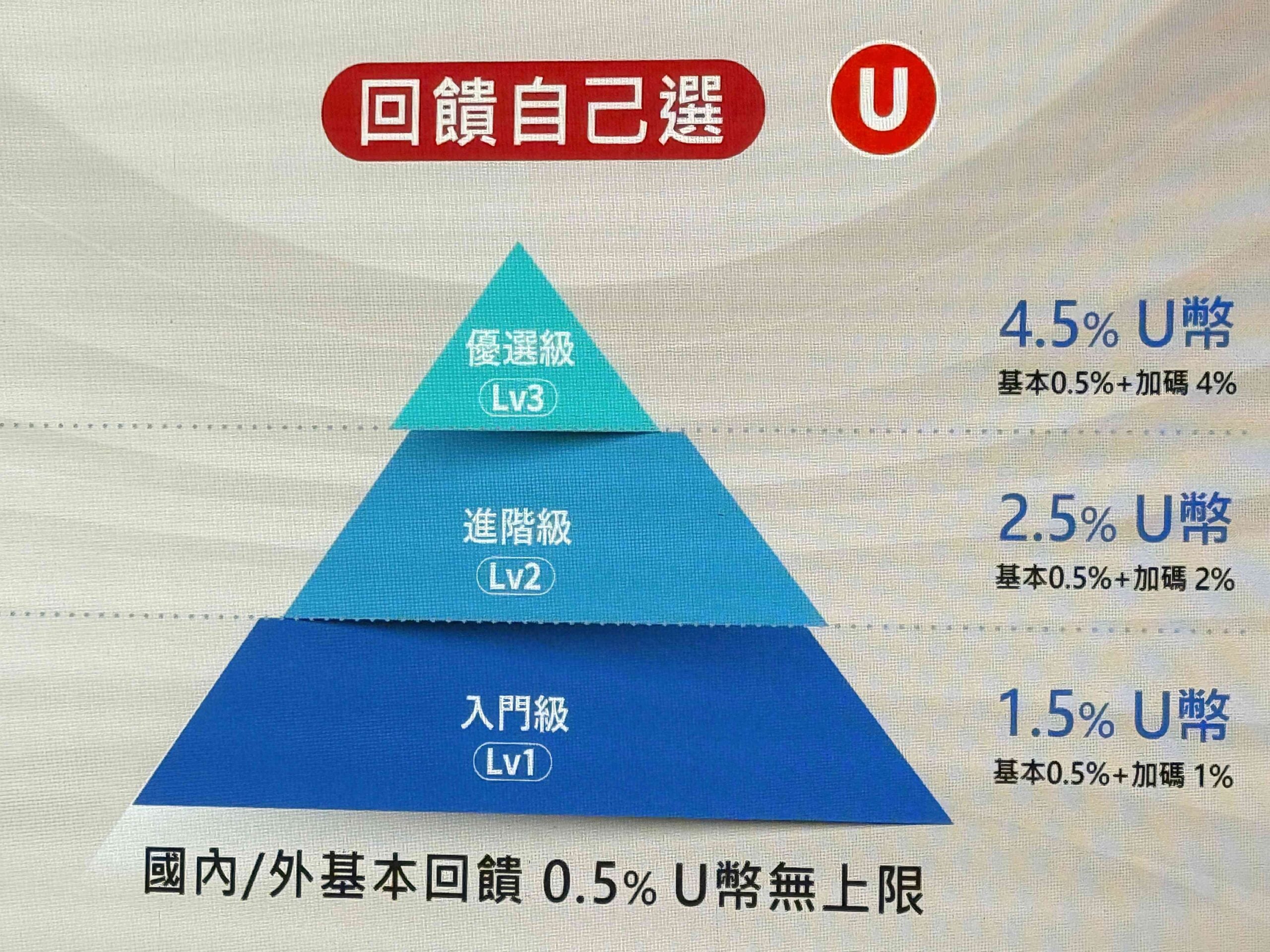 該卡上市期間提供最高 4.5% U 幣回饋率,前三個月首次申辦核卡後自動升等到 Lv.2,可享 2.5% 回饋;透過指定方式完成 MaiCoin 會員註冊,加碼等值 200 元 MAX Token,前 1,000 名再追加 50 元,首刷達門檻另送 300 元序號,新戶總計最高可領 550 元 MAX Token。