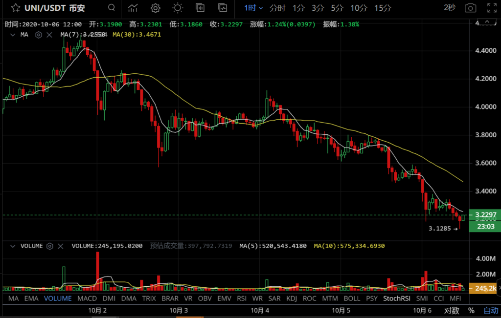 截至截稿為止,UNI 現價為 3.23 美元左右, 已陸續跌破了 3.65 美元、以及先前曾提及的 3.5 美元關鍵價位。