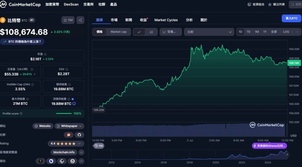 • 比特幣 BTC 即時價格