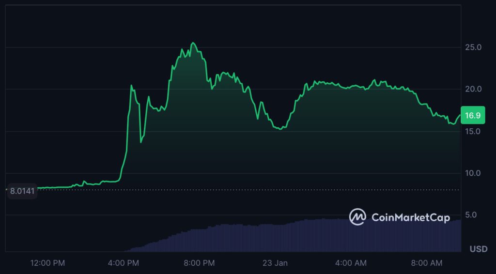 美國法院撤銷 OFAC 對 Tornado Cash 的制裁,無疑是對該協議的一個利好訊號。受此激勵,Tornado Cash 原生代幣 TORN 迎來大漲,近 24 小時漲幅一度高達 168%,撰稿時有所回調暫報 16.9 美元。