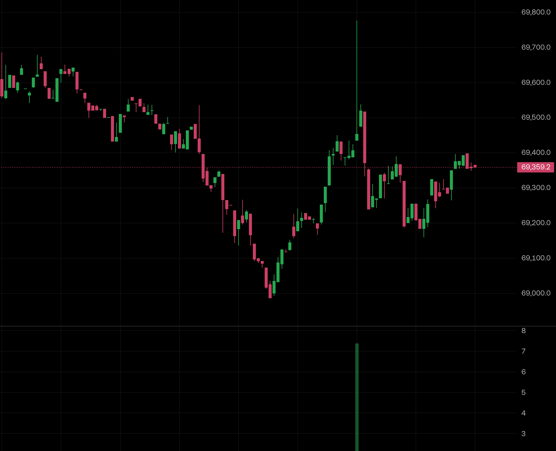 在總經數據發布之際,加密貨幣市場迎來短暫的劇烈波動。比特幣一度向上拉漲至最高 69,750 美元,但隨後快速回落,本文撰稿時暫報 69,300 美元,近 24 小時仍有 2.75% 的跌幅。以太坊走勢類似,不過好在仍守住 2,000 美元關卡,暫報 2,023 美元。