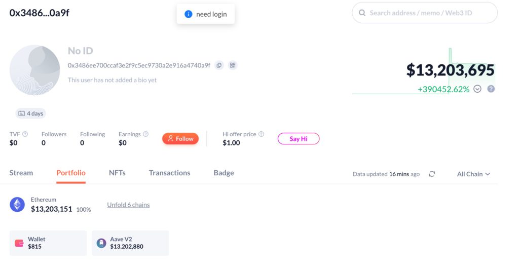 根據鏈上數據,疑似為攻擊者的錢包在收到超 2000 萬美元資產後很快又進行了轉移,目前大部分資產為存放在 Aave 的 1300 多萬枚 USDC。