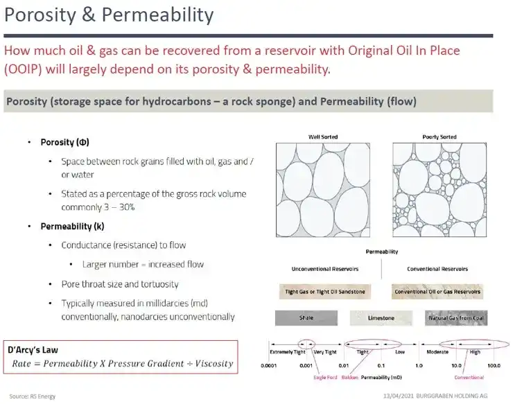 同樣的情況也適用於孔隙度。全球最優質的二疊紀頁岩,其孔隙度通常為 4% 到 8%,而奧里諾科重油砂的孔隙度則介於 20% 到 38% 之間。那麼,問自己一個簡單的問題:如果政治因素被排除在外,你更願意鑽探和開採哪種資源?你覺得哪種資源的全週期盈虧平衡成本更低?