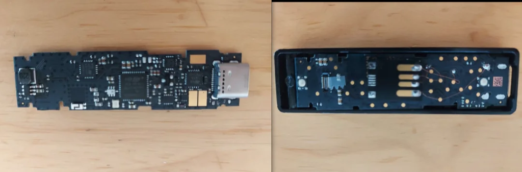 實際上,這些 「新裝置」 是被篡改過的 Ledger,內部電路板上額外焊接了一個 U 盤,用於植入惡意程式。偽造的說明書會引導使用者將裝置連線電腦,執行自動彈出的應用程式,並按照提示輸入原錢包的 24 個助記詞進行 「遷移」 或 「恢復」。一旦輸入助記詞,資料便會被髮送給攻擊者,資金隨即被盜。
