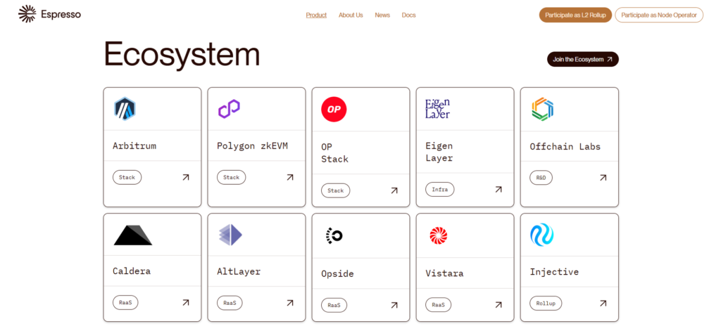 (此測試網版本也看到 Espresso Sequencer 支援四個匯總堆疊(Arbitrum、Cartesi、Optimism 和 Polygon zkEVM)以及與 Rollup 專案的多個合作。)