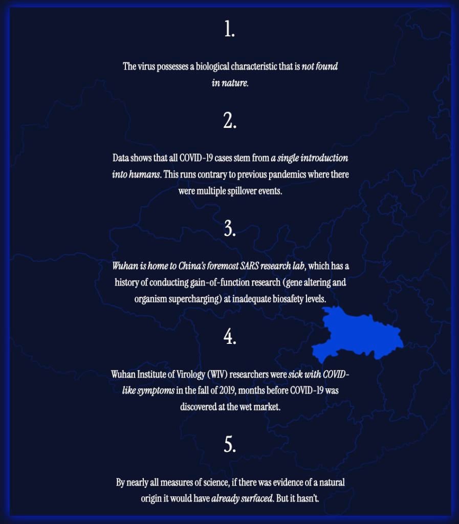 該網站列出 5 大要點,來支持實驗室外洩理論: