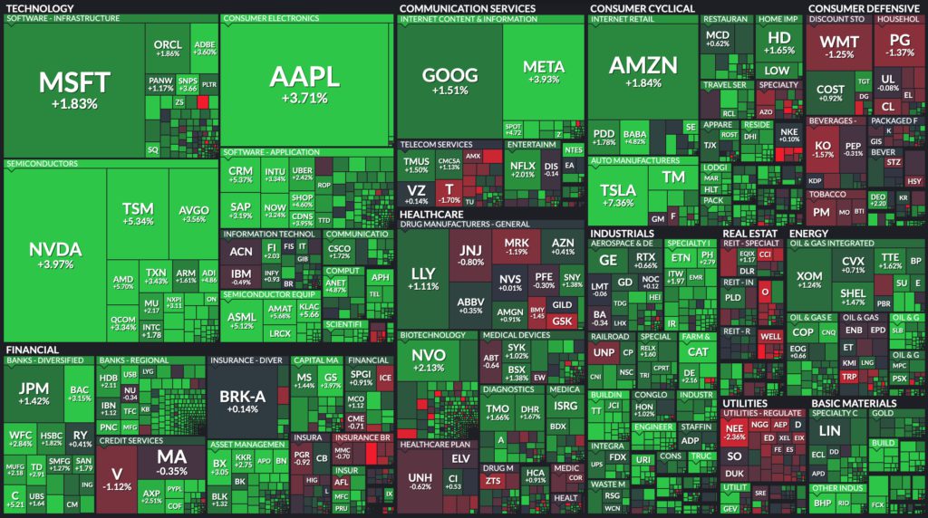 - 道瓊工業指數上漲 522.09 點,漲幅 1.26%,收 42025.19 點