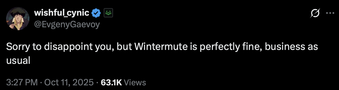面對傳言,Wintermute 團隊選擇「先說再算」的策略,三小時內連續拋出三則公開訊息。創辦人 wishful_cynic 率先在 X 平台貼文: