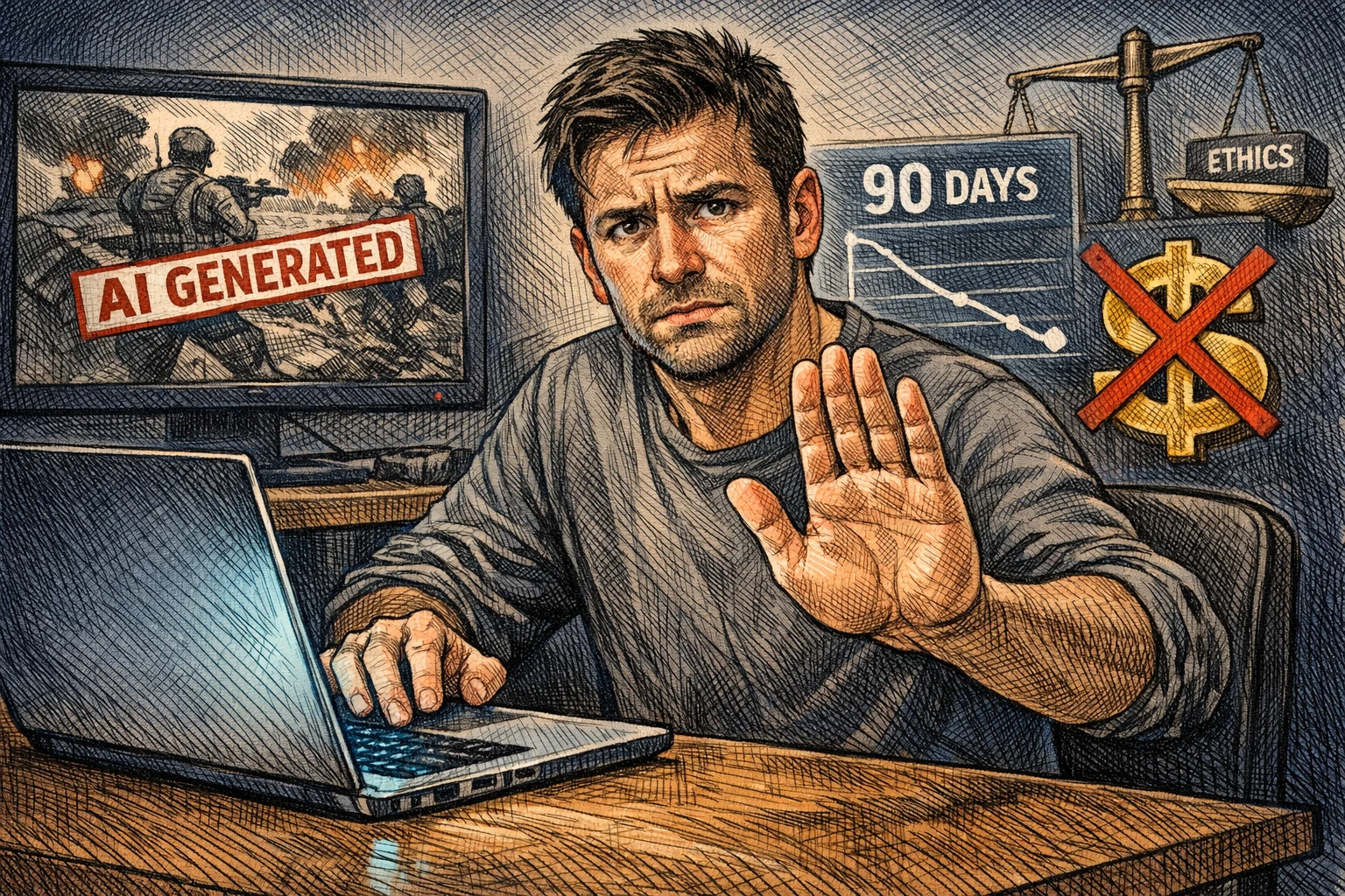 X 平台(前 Twitter)宣布實施 90 天分潤禁令新規,創作者若隱瞞使用 AI 生成的戰爭衝突影片將遭停權處分,累犯者將被永久踢出收益分享計劃。