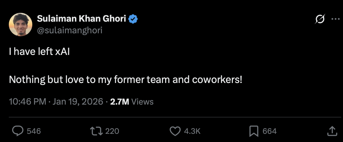 Sulaiman Ghori 的訪談內容幾乎全是讚美。他沒有洩漏技術機密,沒有批評公司決策,沒有說同事的壞話。他只是描述了 xAI 的工作文化,而且是以一種幾乎像招聘廣告的方式。