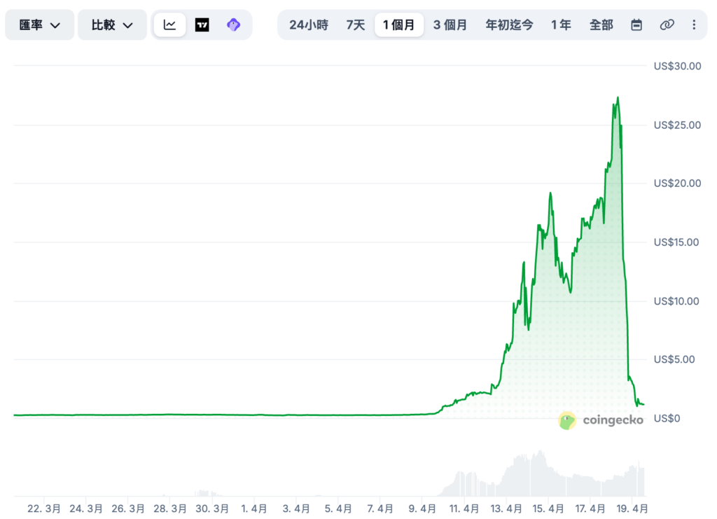 然而,這場漲勢在 4 月 18 日急速終結。鏈上偵探 ZachXBT 直指內部人士掌控了該項目約 95% 的流通供應量,有可以的操盤行為,並懸賞徵集舉報人資訊。結果該代幣一夜跌幅超 90%,目前收在 $1.1 附近,所有追高的散戶都損失慘重。